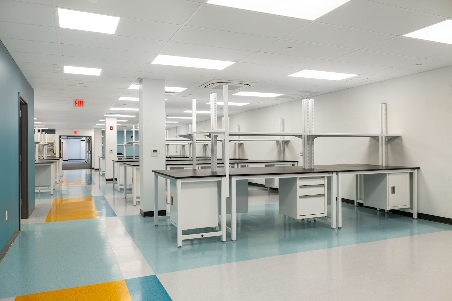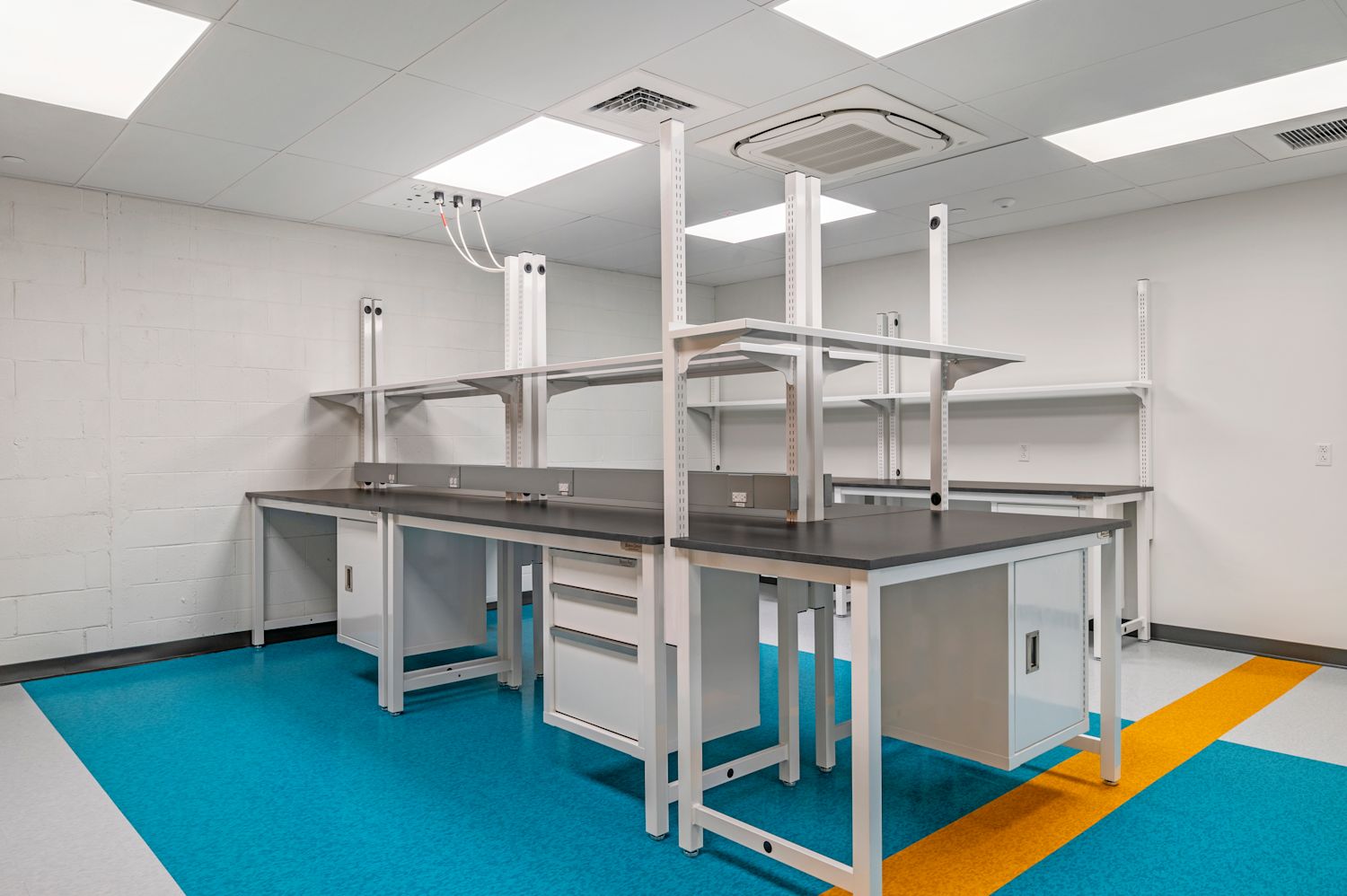 The newly built lab space is immediately available for lease. Capitalize on 6-foot fume hoods, brand-new 2-inch water lines, and dedicated 800-amp, 480-volt disconnect service. Casework, benching, and chip tanks for acid neutralization are also included.